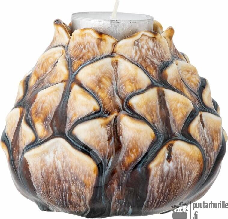 Tunnelmallinen, keraaminen käpyaiheinen tuikkukippo. Sopii hyvin luonnonläheiseen sisustukseen. Tuikkukippoon sopii sekä aidot että LED-tuikut.