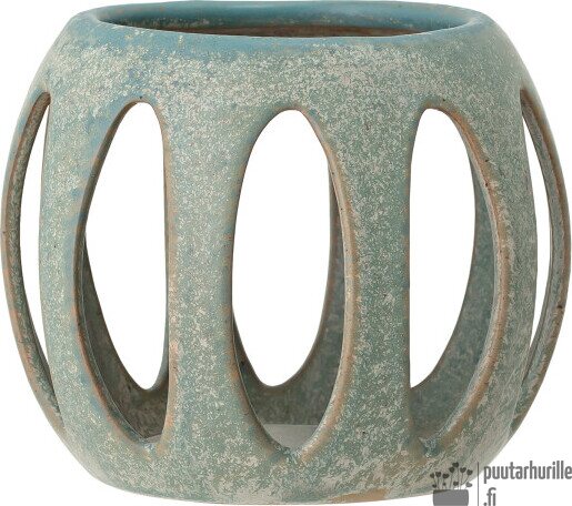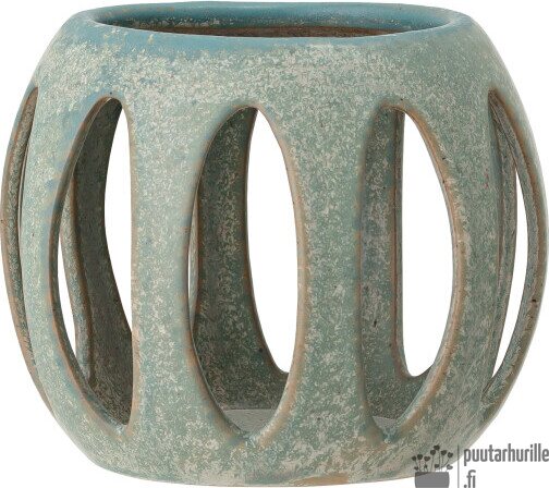 Yksinkertaisen tyylikäs, turkoosinsävuinen keraaminen tuikkukippo. Tuikkukippoon sopii sekä aidot että LED-tuikut.