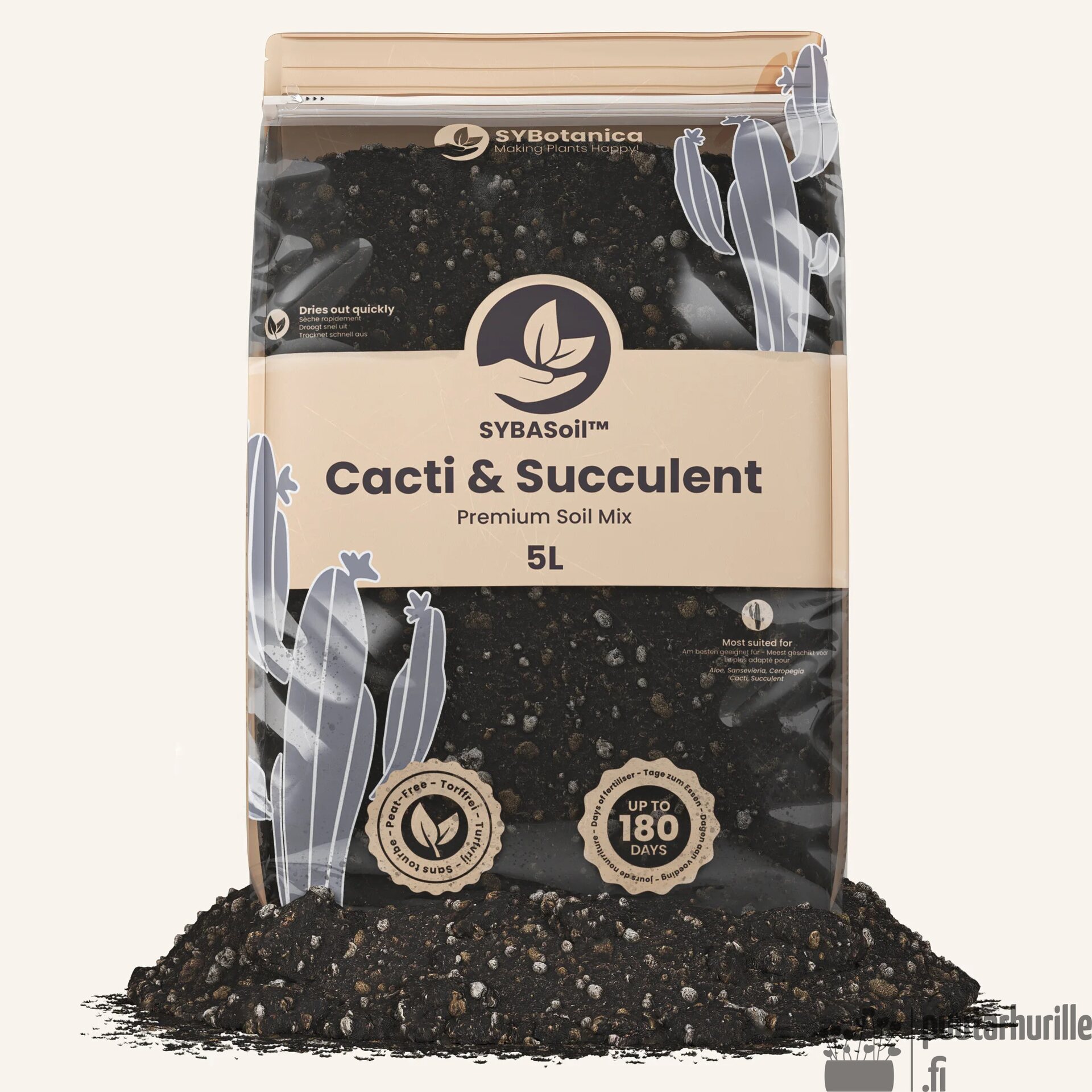 Ainekset: kookoskuitu, viherkasvihiekka, perliitti, hohkakivi, matokomposti, aktiivihiili.