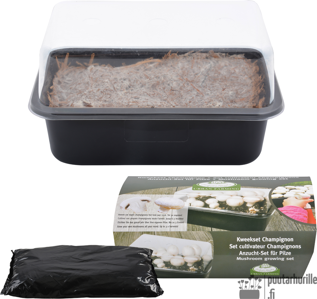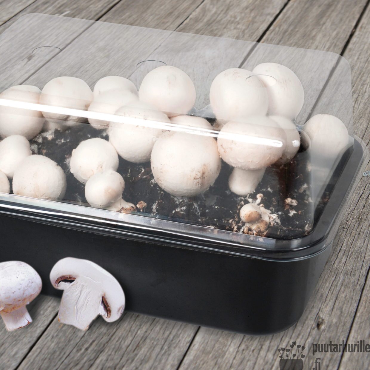 Kokeile helposti omien sienten kasvatusta kotona! Kätevä herkkusienten kasvatussetti sisältää kasvatusastian, kasvualusta ja sieniympin - tarvitset lisäksi vain vettä. Sen avulla voit kasvattaa terveellisiä sieniä ympäri vuoden. Kasvuaika on muutaman viikon. Setistä saa maksimissaan n. 3 satoa.