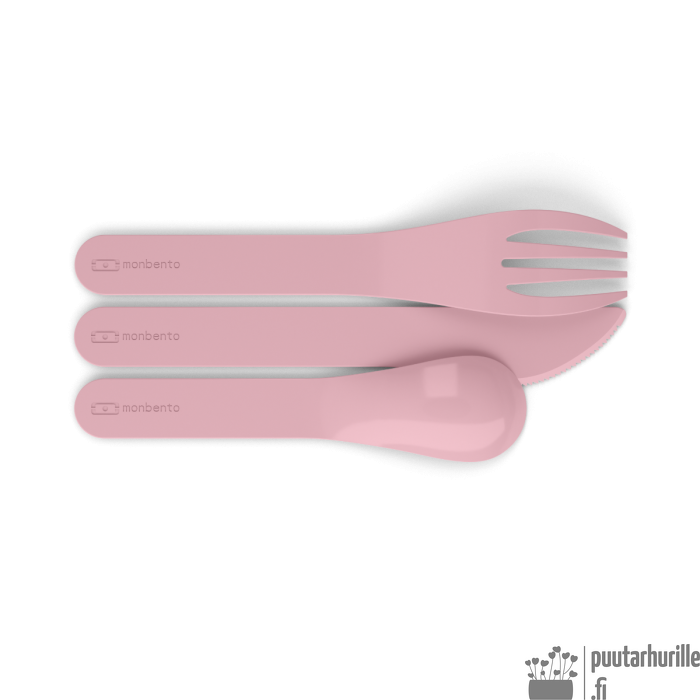 Biohajoavasta kasvipohjaisesta muovista valmistettu aterinsetti (lusikka, haarukka ja veitsi), joka kulkee kätevästi mukana bentorasiassa tai vaikka käsilaukussa. Aterimet kestävät konepesun ja ne voi ottaa myös lentokoneeseen mukaan. Sopii MB Original- ja MB Square-rasioihin, niille on varattu paikka kannen alla. Aterimien pituus on noin 13,5 cm.